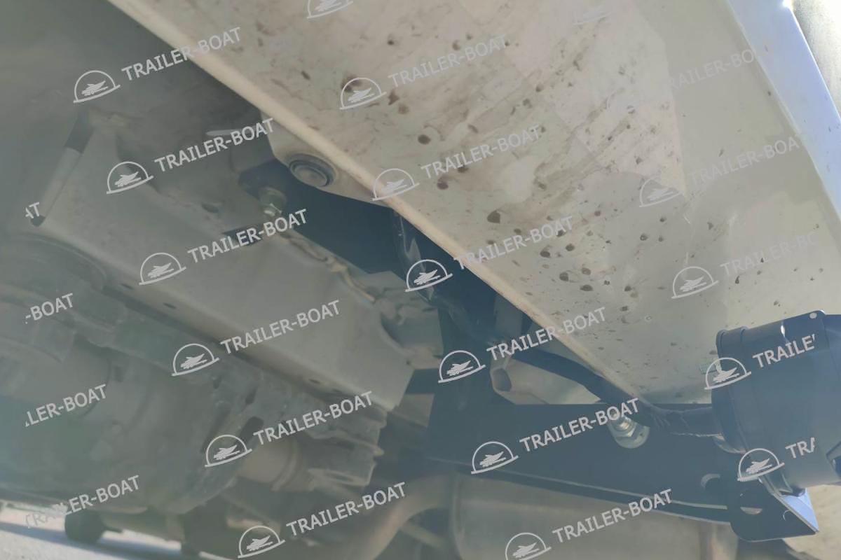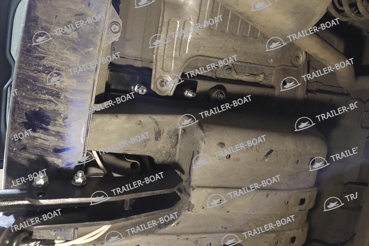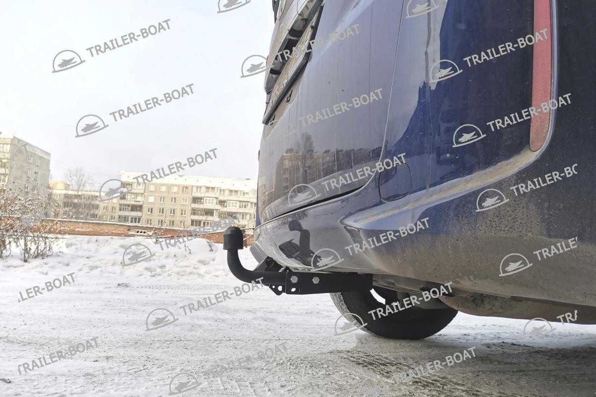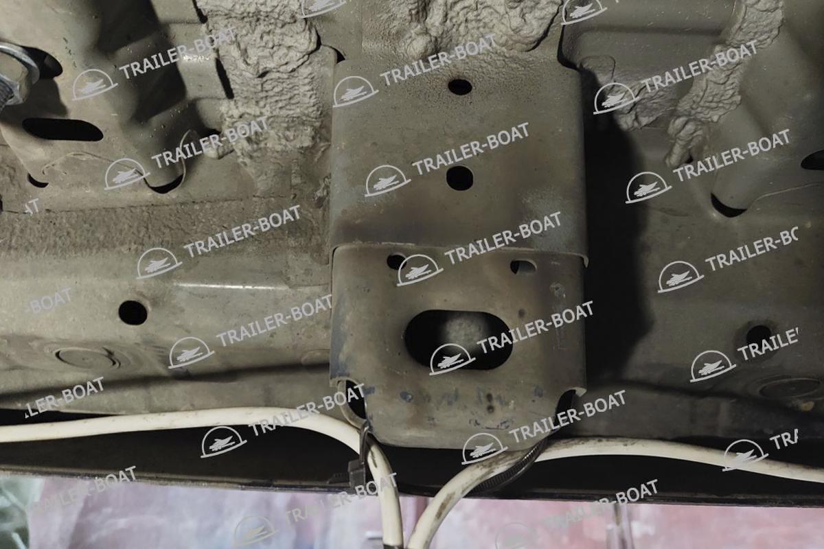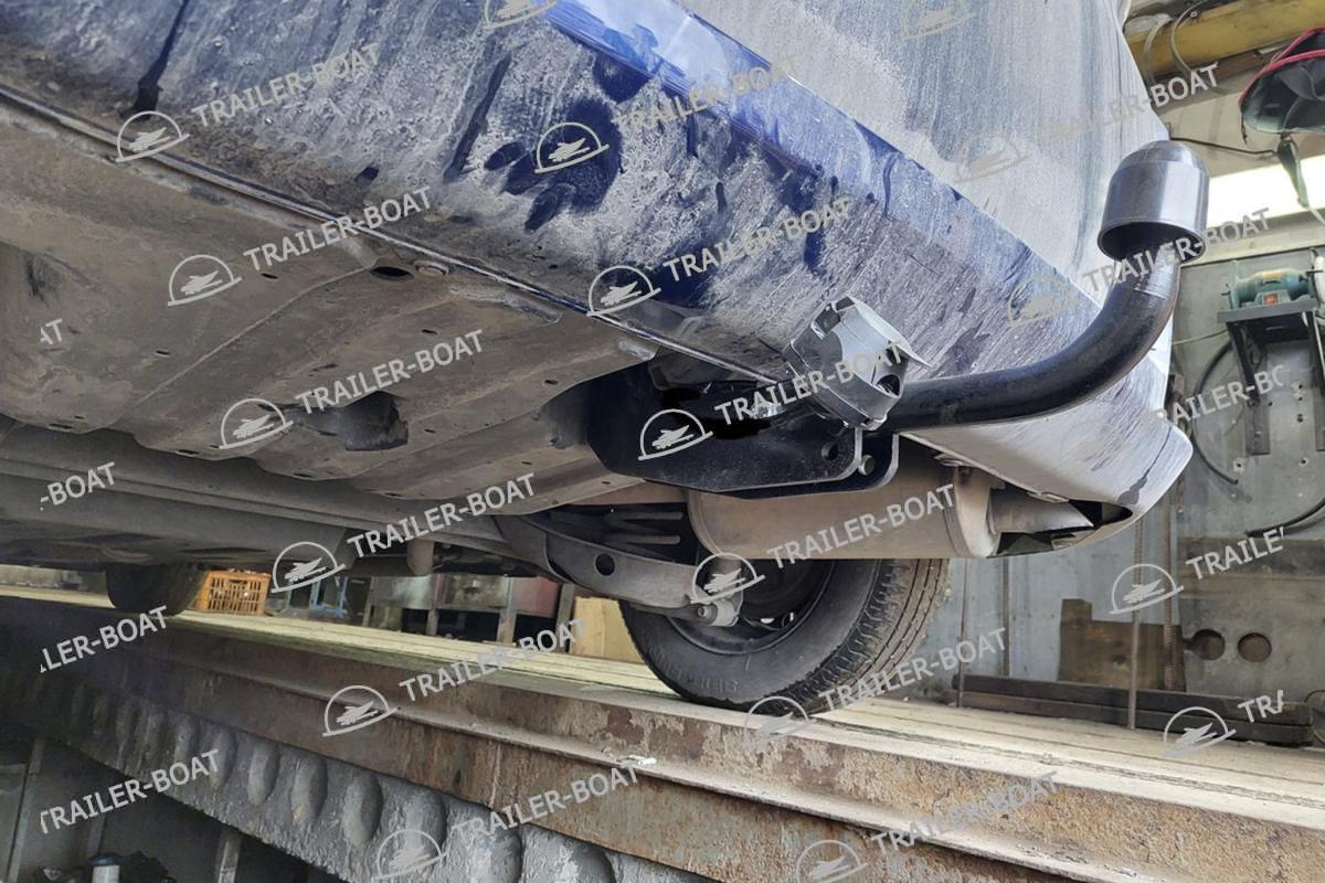 Бампер не снимать. Снять большой пластиковый кожух снизу. В багажнике снять мягкий пол. Приложить ТСУ, проверить вылет крюка, отметить отверстия для сверления. Дальние отверстия сверлить насквозь обе полки. Ближние только со стороны багажника, 1 полку сверлить, снизу овальные отверстия уже есть. Установить ТСУ, используя закладные 4 втулки. Сделать вырез в пластиковом кожухе под ТСУ. Для 7-ми местной версии на время установки ТСУ необходимо снять 3-й ряд сидений.