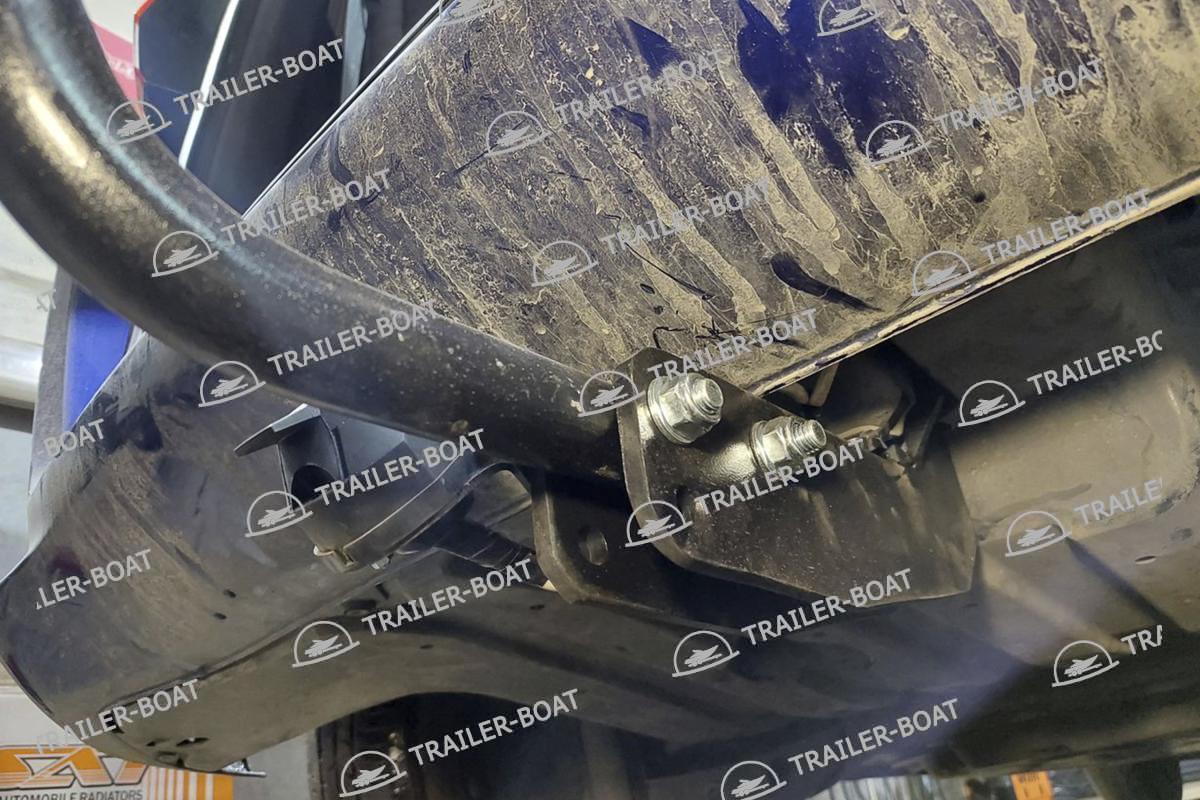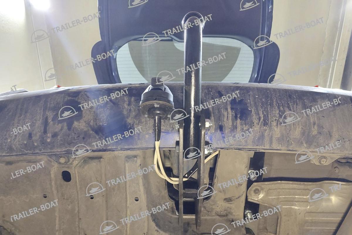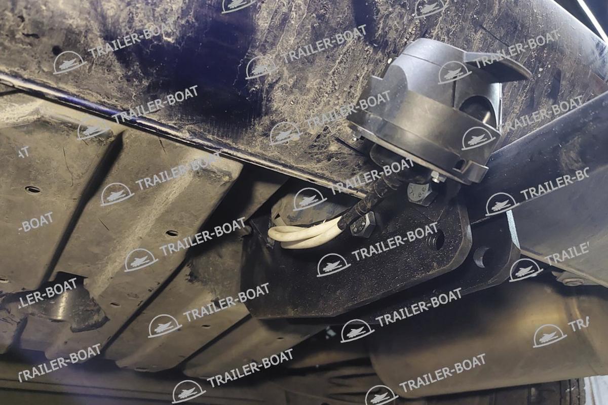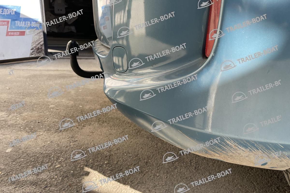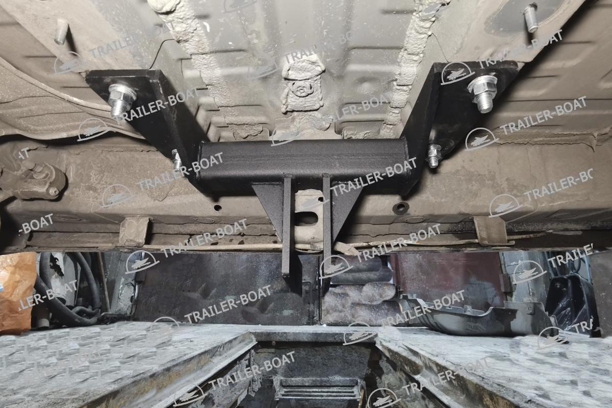 Бампер не снимать. Снять большой пластиковый кожух снизу. В багажнике снять мягкий пол. Приложить ТСУ, проверить вылет крюка, отметить отверстия для сверления. Дальние отверстия сверлить насквозь обе полки. Ближние только со стороны багажника, 1 полку сверлить, снизу овальные отверстия уже есть. Установить ТСУ, используя закладные 4 втулки. Сделать вырез в пластиковом кожухе под ТСУ. Для 7-ми местной версии на время установки ТСУ необходимо снять 3-й ряд сидений.