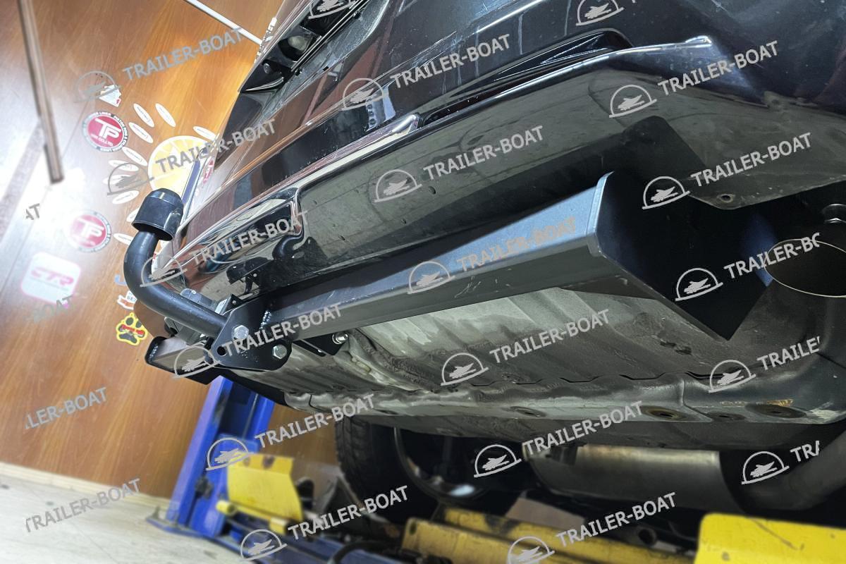 Для установки не требуется снимать бампер. Фаркоп крепится в лонжероны с усилением по центру в крепление буксировочной петли.