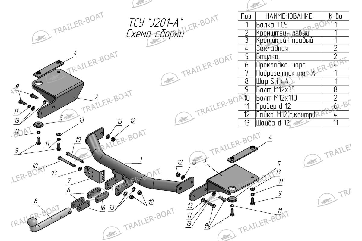 | Крепление шара к раме | Условно-съемное на болтах |
