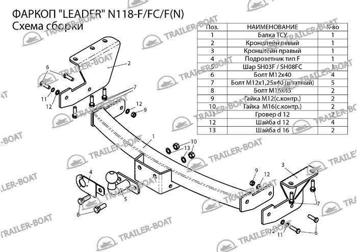 Фаркоп Nissan Murano 10-15 Z51 рама и крюк-шар, 50мм 12994