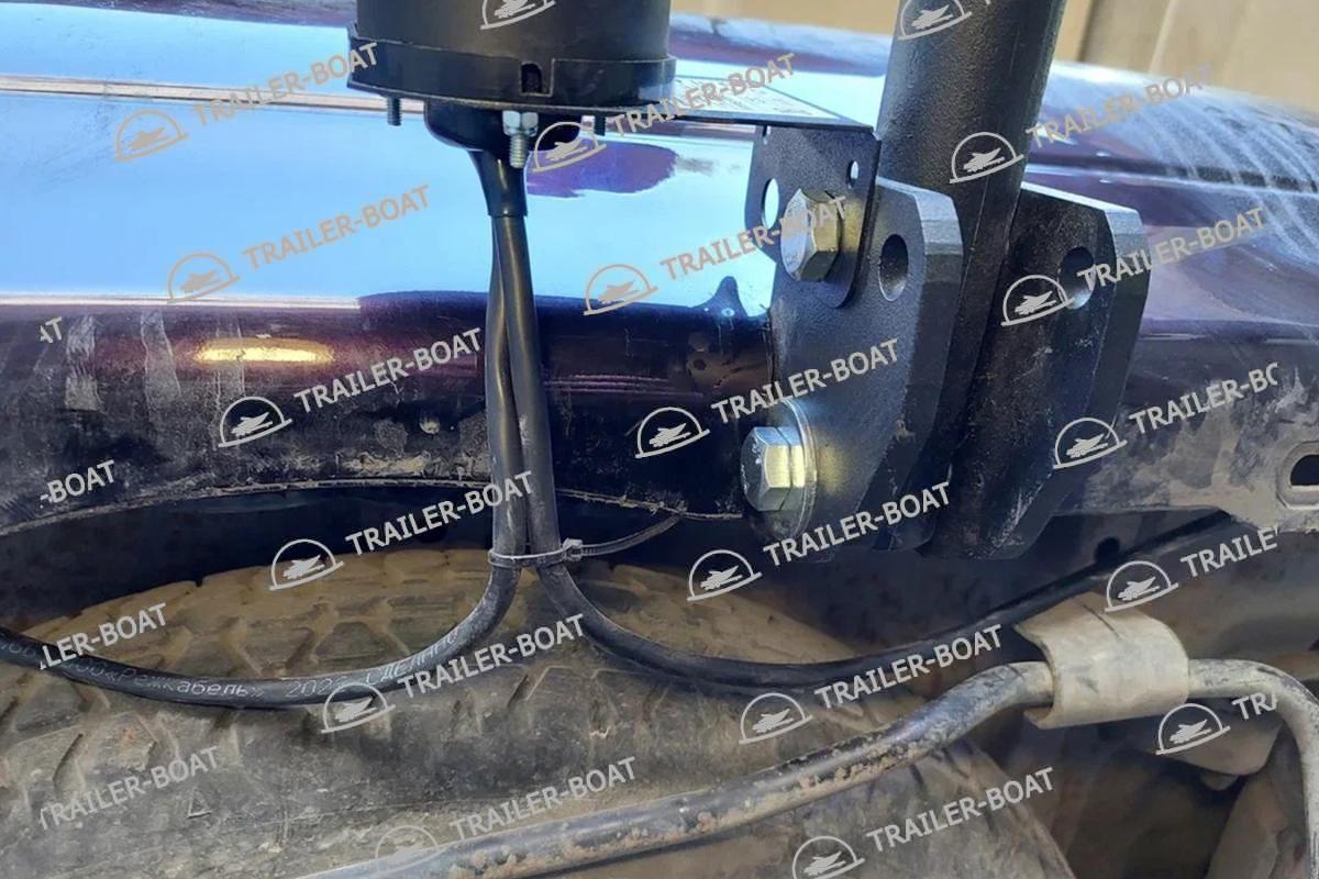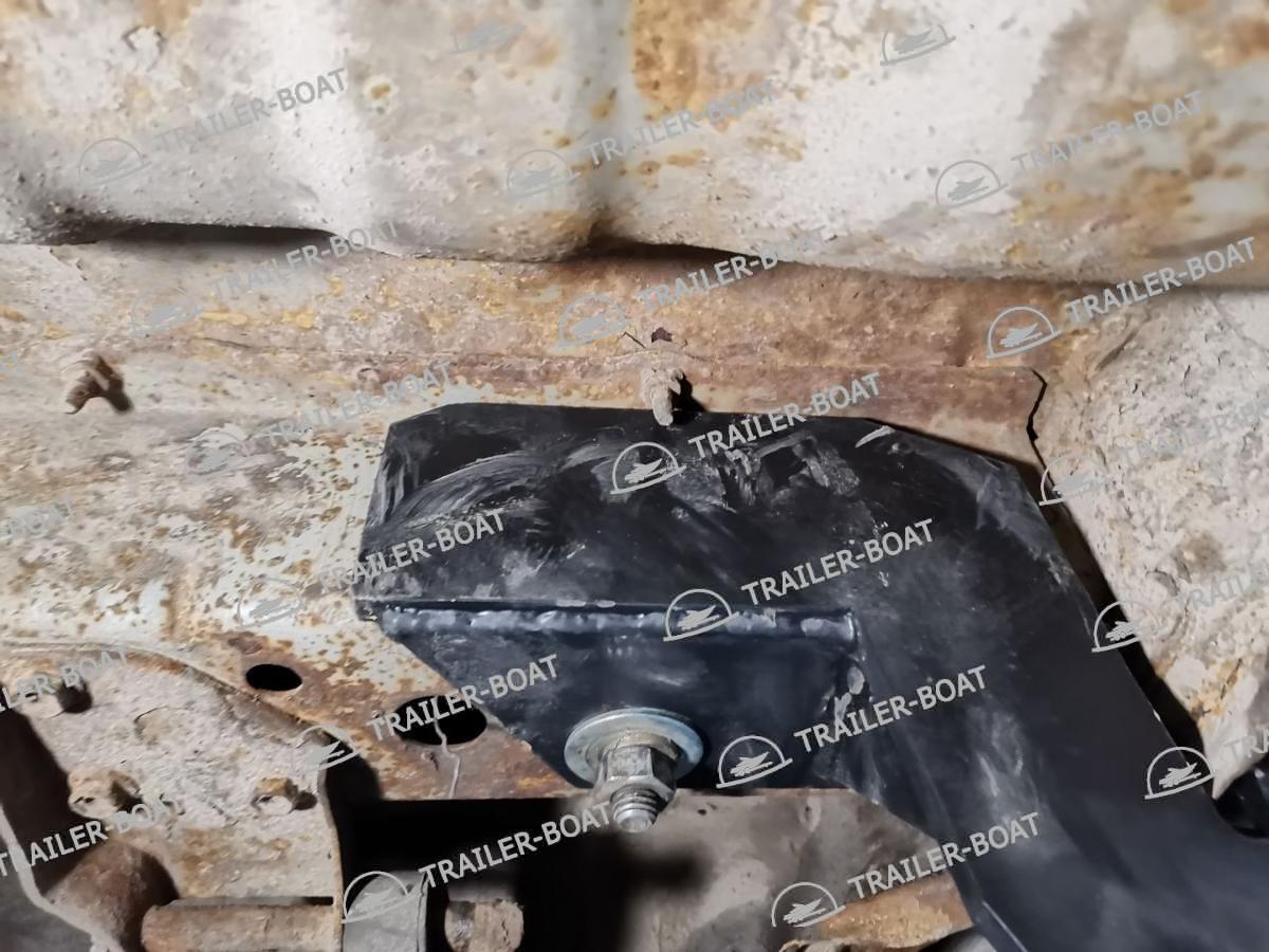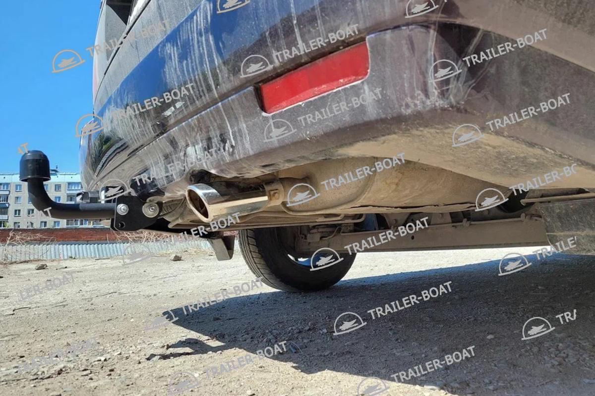 Слева для установки фаркопа необходимо снять буксировочную петлю. Справа (в районе глушителя) просверлить два сквозных отверстия и используя закладные втулки закрепить фаркоп. Длину втулок подрезать по месту. Слева фиксируем фаркоп в штатные места от буксировочной петли. Подрезка бампера не требуется для бампера без обвеса.