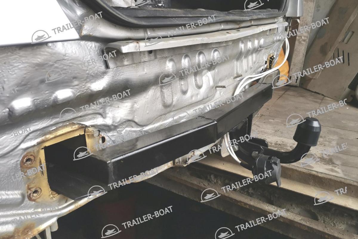 Снять бампер, выпилить в задней панели два прямоугольных отверстия с торцов лонжеронов, завести фаркоп в лонжероны и закрепить болтами (4 шт.) через штатные отверстия. Подрезать бампер по месту.