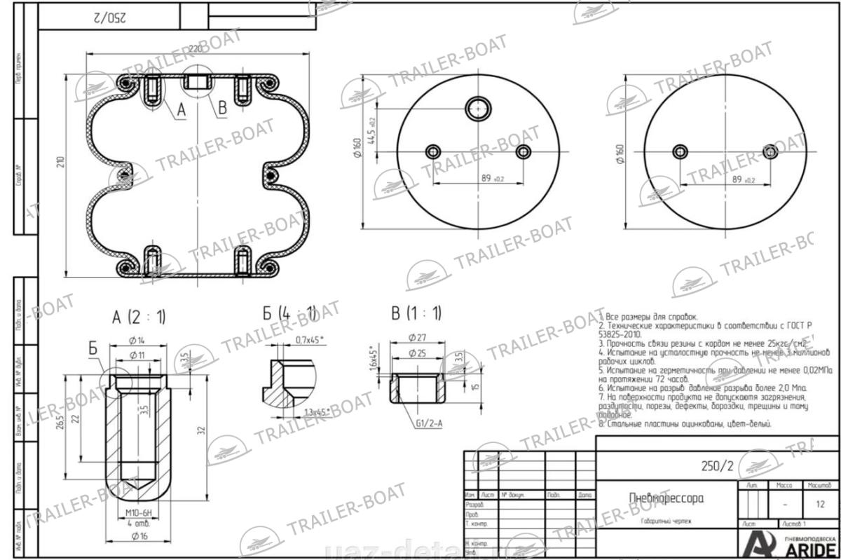 | Тип пневмоэлемента | 250/2 (220мм) |