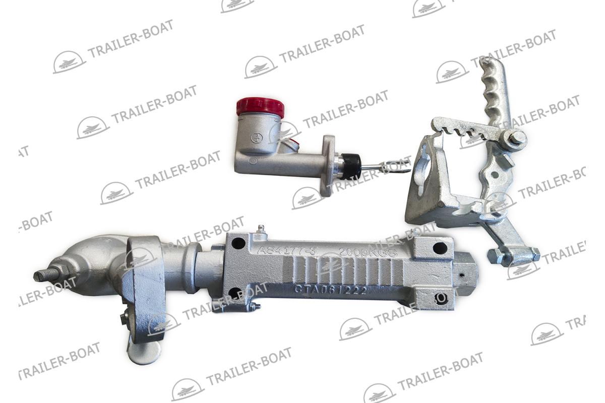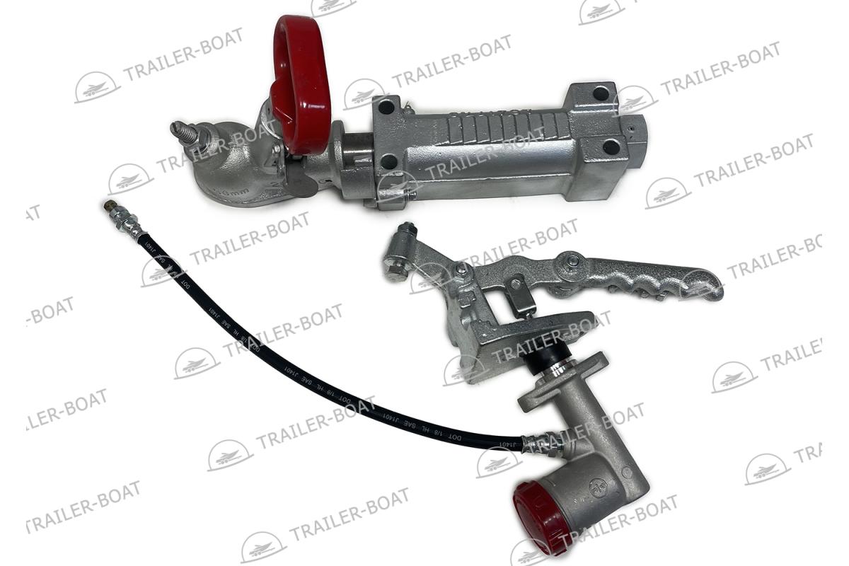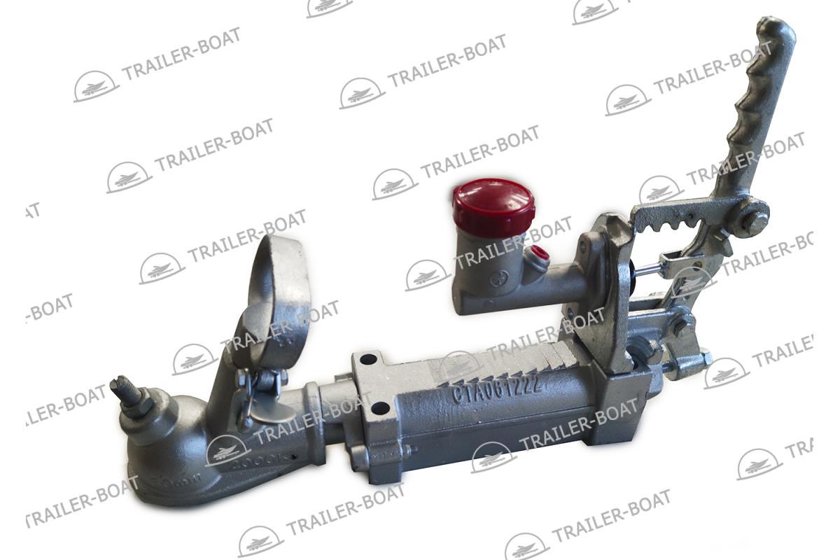 Сцепное устройство с гидравлическим тормозным приводом для прицепов оборудованных гидравлическими тормозами.Гидравлический привод синхронизирует торможение прицепа с торможением буксирующего автомобиля.