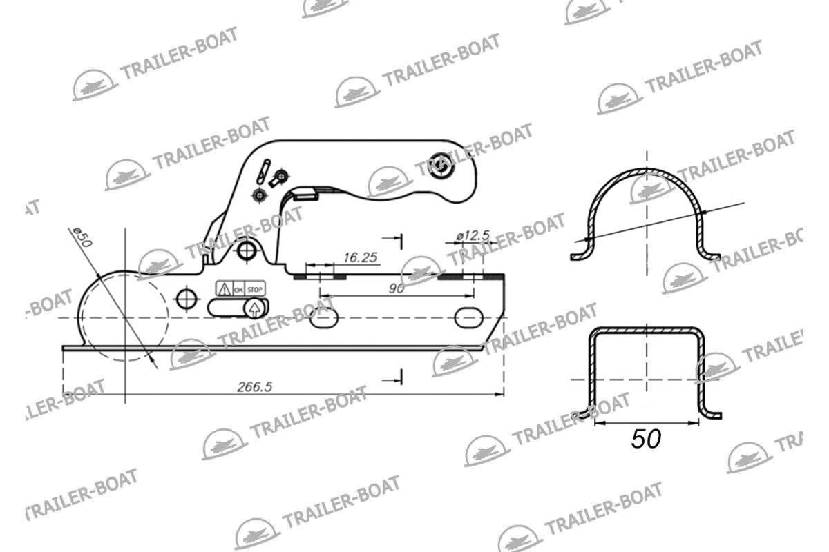 Сцепное устройство для прицепа, шар 50 мм, 50х50 мм, 1700 кг, 57102