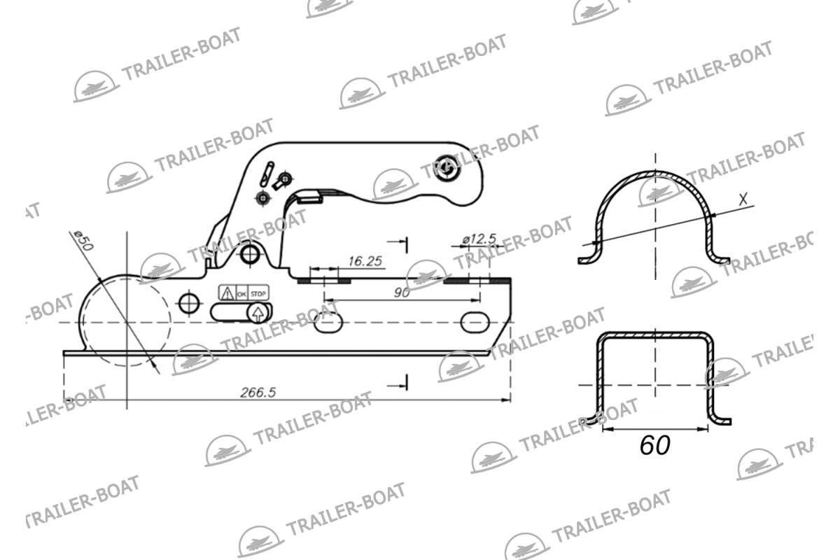 Сцепное устройство для прицепа, шар 50 мм, 60х60 мм, 800 кг, 57099