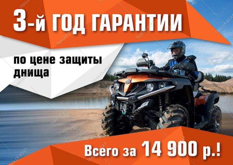 Несомненную выгоду дополнительного года гарантии можно оценить на примере хита продаж — CFMOTO X5 H.O. EPS. Продлить гарантию на эту модель можно по цене, которая даже ниже стоимости защиты днища – всего за 14 900 руб.!